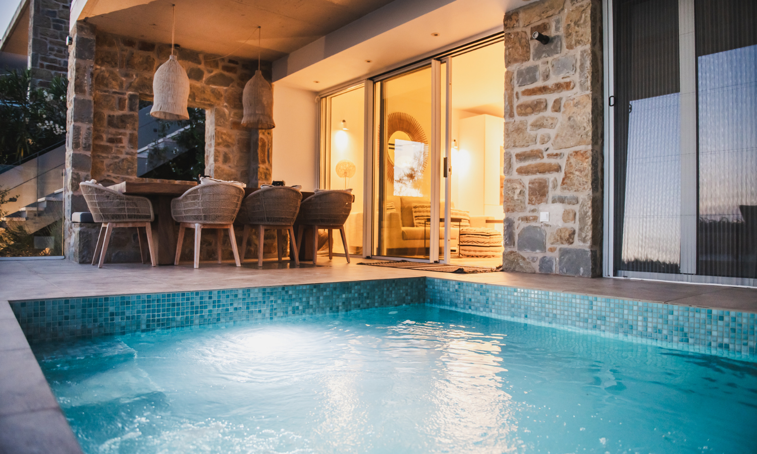 Ιδιωτικές πισίνα και τζακούζι για απόλυτη χαλάρωσηΚύρια πισίνα για κοινή αναψυχή και απόλαυσηΕγκαταστάσεις σάουνας για μια αναζωογονητική εμπειρίαΠαροχές υψηλού επιπέδου σχεδιασμένες για άνεση και ευκολίαΜια γαλήνια, ήσυχη τοποθεσία για μια ειρηνική απόδραση